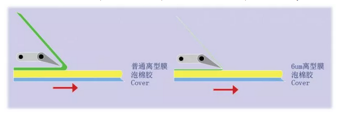 6um离型膜在模切时,由于PET非常薄,刀锋可轻易切断PET与胶体,不易受到刀锋挤压。