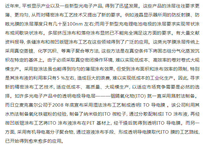 精密涂布工艺应用的新进展