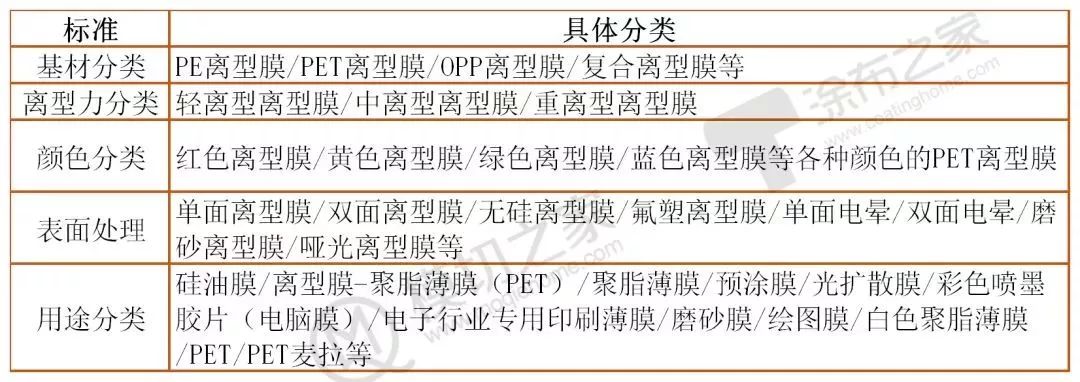 PET离型膜的类别表