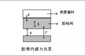 上图A表示胶粘剂与基材粘接力,反映胶与基材的密着性情况,A和B值大于C值是理想的状态,特别是再剥离型(低粘性保护膜类)胶带必须达到的要求,如果A值比B或C小的时候,剥离后会出现胶残留到被粘物上。