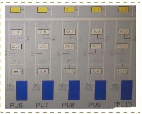 关于凹印减风,笔者在《印刷技术》2017年第01期《烘箱减风优化推进凹印环保化的有利之策》一文有论述,请参考。此外,要注意减风极限:凹印地排、主排的最小安全外排风量主要取决于原始烘箱设计,目前对于速度200m/min以下机型,LEL投用后,非满版单元有组织新风基本全为0,主排每色一般约600~1600m3/h,地排每色一般500~1000m3/h。图7为在北人凹印上用北人LEL(凹印单元LEL,目前国内北人做的最多),小版面新风开20%用于地面抽风,否则为0,图8为意大利NIRA的LEL,用于进口凹印机。
