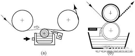 (b)传统凹版印刷式涂布装置示意图