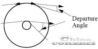 传统凹版印刷式涂布之雕刻轮直径约125~250mm ,微凹版印刷式涂布之雕刻轮直径则在20~50mm 之间。传统凹版印刷式涂布由于轮径大,基材与雕刻轮的接触面积也较大(如图五),涂布时也就比较容易出现问题。基材与雕刻轮接触面积大小还存在另一问题,就是涂液会在接触点前、后形成乱流旋涡液珠(Turbulent re-CirculationBead) (如图六),容易造成涂布不稳定,且轮径愈大,接触面积愈大,此一情形愈严重。微凹版印刷式涂布无背胶轮,自然较不会发生此一问题。