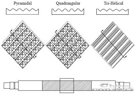 图三:三种雕刻轮表面凹槽形状