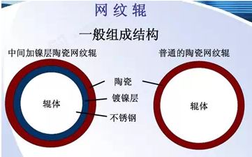 网纹辊的组成机构一般分为中加镍层陶瓷网纹辊和普通的陶瓷网纹辊两种,两者区别参见下图: