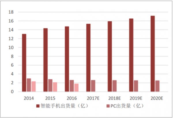 智能手机、PC、平板电脑全球出货量及预测